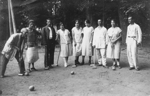 Далее про «… крокет…» Крокет в России получил распространение главным образом, как средство активного отдыха и развлечения. Крокет в высшем обществе стал непременным атрибутом светского образа жизни. При благоустройстве дворянской усадьбы обязательно создавалась крокетная площадка, она стала непременным элементом приусадебных парков. Вплоть до 1917 года крокет оставался игрой аристократов. В России крокет претерпевает значительные изменения и приобретает такие особенности, что его можно, с полным основанием, назвать «Русским крокетом». Изменения коснулись схем расстановки ворот и пути движения шаров по полю. Были приняты такие схемы расстановки ворот как: «Орел», «Андреевский крест». Современные способы расстановки описаны в правилах игры В годы Советской власти игра крокет становится массовой. В крокет играли чуть ли не в каждом дворе, тем более, на даче!
