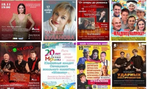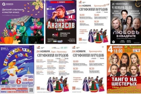 Уже пора готовиться к новому году, поэтому больше двух спектаклей “Щелкунчик” сможете увидеть. И традиционные концерты - Владимир Кузьмин в Пушкино, Михаил Бублик и Шаман в Королёве, в Сергиевом Посаде группа “Пикник”. Вы можете послушать хора Московского Данилова монастыря, встретится с писательницей и оторваться под рок - все это не выезжая из Пушкино.