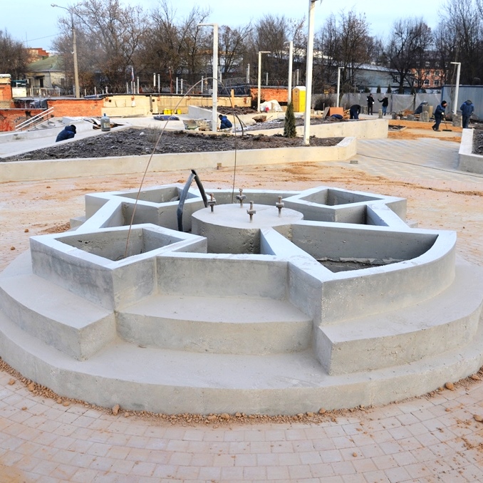 Сквер на западной стороне пока создается без центрального арт-объекта, "Солнца", весом в 6,5 тонн - его решили вынести из действующего контракта. Кстати, в том, что подрядчик как обещает, уложится в 2 недели, не верит даже администрация. В лучшем случае закончат до 15 декабря, хотя должны были к 1 октября
